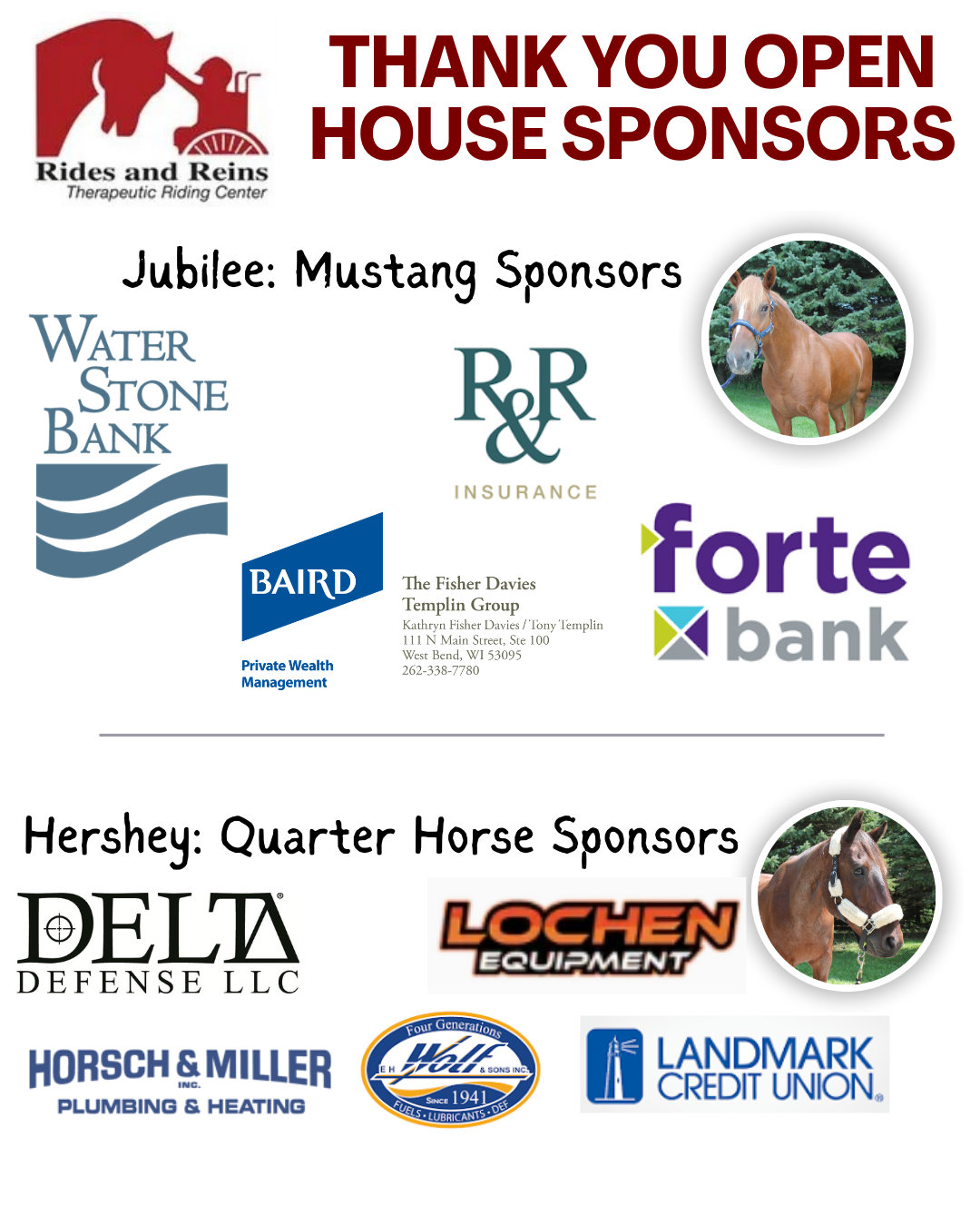 See below for our new sponsorship levels and the benefits of each level. Gifts of any kind are welcome to Rides & Reins TEC, as they continue to help support our riders, horses, and farm.